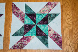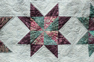 Since this is a sampler quilt, I decided to handle the quilting in the same fashion, each star custom quilted with a common quilting theme in the background and on the borders.